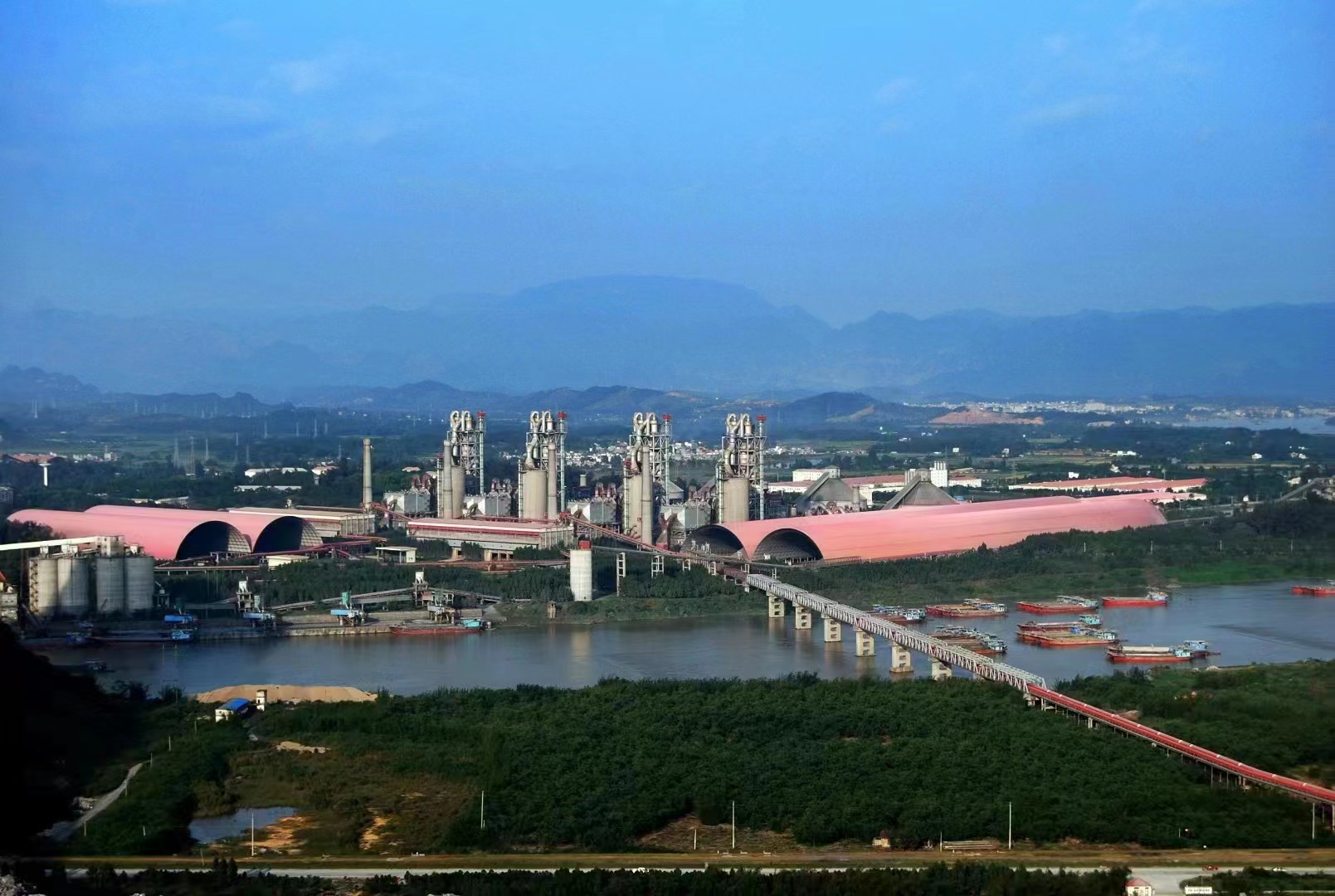 公司現有兩條日產4500噸、兩條日產5000噸熟料生產線,1臺Φ4.2x14.5m水泥粉磨,5臺Φ4.2x14.5m帶輥壓機水泥粉磨,配套6*1000噸級散貨泊位。4條熟料生產線項目于2005年3月19日全面開工建設,2006年4月20日全部建成投產。其中第1條生產線建設工期僅九個多月,實現了當年圖紙設計、當年設備訂貨、當年點火投料的建設目標,刷新了當時水泥行業5000t/d熟料生產線建設的記錄。同期建設的6套水泥粉磨系統分別于2006年6月25日、8月17日、8月30日、9月12日、9月25日、9月30日建成投產,5臺輥壓機技改項目分別于2016年1月、4月、2017年2月、3月和2021年6月全部投入運行,改善了水泥磨運行指標及緩解了品種的壓力。